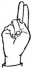 На ћирилици написано КОСТАДИН СКЕНДЕРИ састоји се из 16 слова [?]. Исписано ћириличном једноручном азбуком за глувонеме: